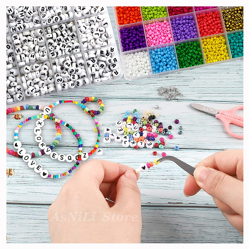 Ce Kit de perles est merveilleux pour toutes sortes de fabrication de bijoux, artisanat de bricolage, porte-clés de bracelet nom, peut être utilisé comme cadeau pour la famille et les amis. Les perles rondes peuvent être utilisées comme perles d'espacement, pour faire différents bracelets de perles de lettres, ou vous pouvez utiliser le cordon élastique pour tisser un bracelet de perles de lettres personnalisé.
